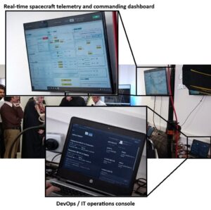 بر اساس دو صفحهنمایش موجود در این عکس، اطلاعات مربوط به ماهواره از داشبورد تلهمتری و فرماندهی و کنسول DevOps / عملیات IT قابل مشاهده است